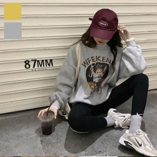 [엄지척]라운드넥 프린팅 오버핏 스트릿 맨투맨 티셔츠 여성_19645916_667501