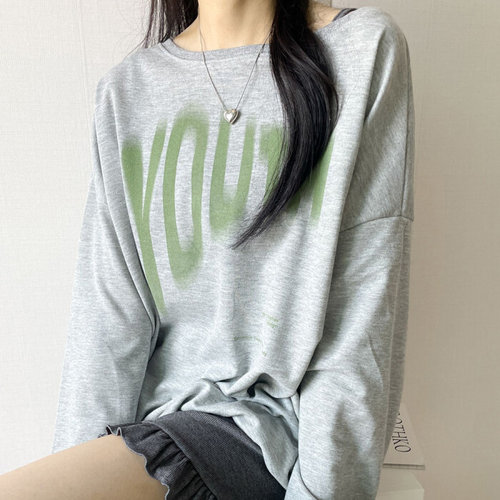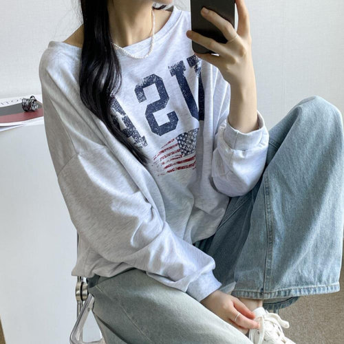 [옷자락]여자 원숄더맨투맨 프린팅 루즈 오버핏 가을 티셔츠