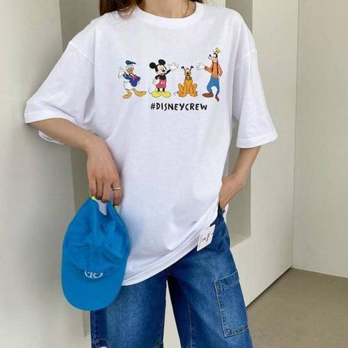 [험블스튜디오] 캐릭터 스피닝 프린팅 여성 데일리 반팔티