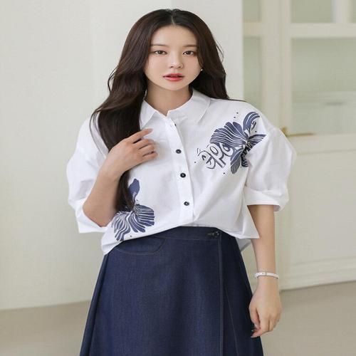[GGPX]꽃 프린팅 버튼 셔츠 (GP8SH003B)