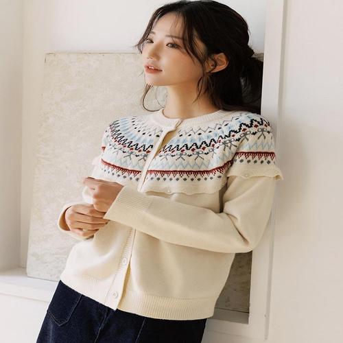 [WPBG]요크 프릴 라운드넥 니트 가디건_3color