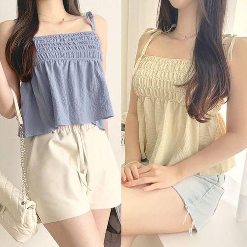 여성 프릴 민소매 나시 레이스 뷔스티에 슬림핏 끈 캐미솔 블라우스 OFS-SLS17