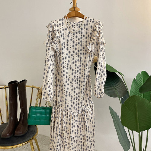 고품질 데이트룩 플라워 밴딩 봄가을 롱치마 프릴 원피스 꽃 (WFFUNMX)