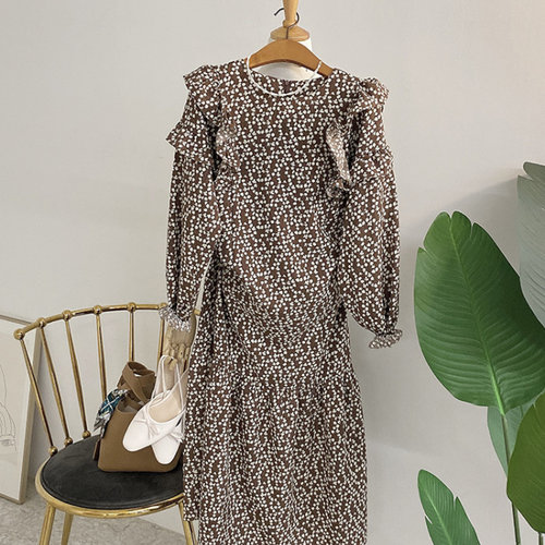 데이트룩 플라워 밴딩 봄가을 롱치마 프릴 원피스 꽃 (WFFUNMX)
