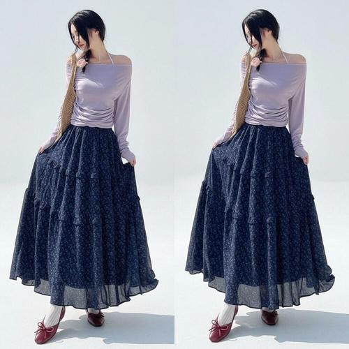 [신상오픈런]여성용 데일리 플라워 롱스커트 편안한 여신핏