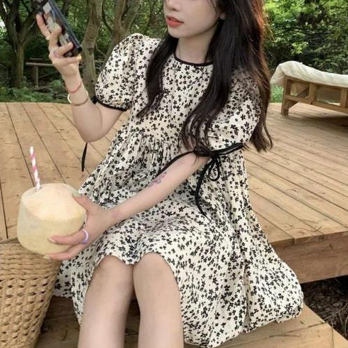 슬림소녀 여자 여름 리본 플라워 원피스 슬림핏 a라인 스커트