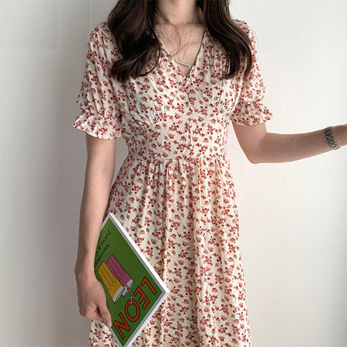 [ab.f.z]플라워 허리셔링 쉬폰 원피스 FSPZZ1O32C