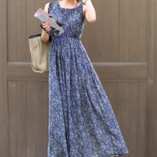 [미라클세븐]여성 시스루 플라워 패턴 루즈핏 쉬폰 나시 롱 드레스