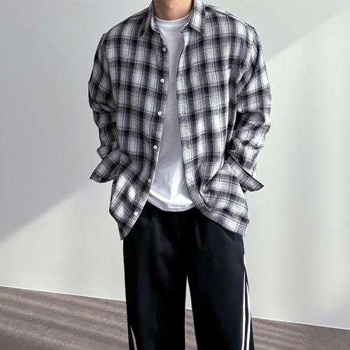 [모노폴로지]체크 박스핏 오버핏 가을 긴팔 캐주얼 이너 플란넬 셔츠 3color