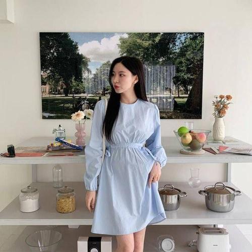[에이치플러스몰]쉬폰 원피스 허리 뷔스티에 스트랩 롱니트 러블