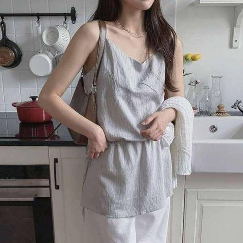 [에이치플러스몰]여름 스트랩 쉬폰 휴양지 트위드 여성 끈나시
