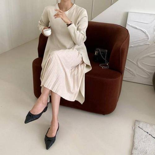 [에이치플러스몰]스트랩 포인트 나일론 롱니트 트위드 하객 원피
