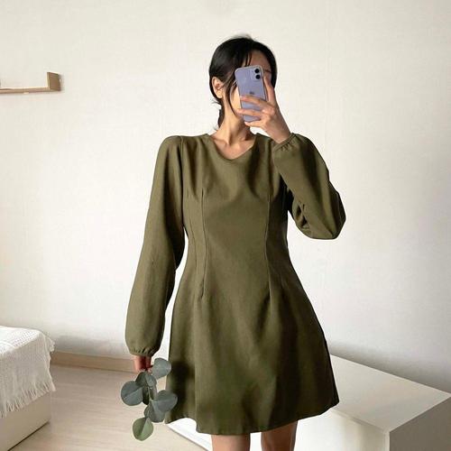 [옷자락] [시즌오프]겨울 하객룩 퍼프 긴팔 핀턱 플레어 미니 원피스_5