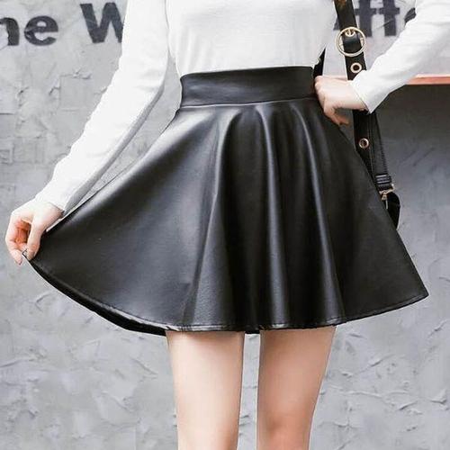 레더플레어스커트/페이크가죽/허리밴딩스커트/미니스커트/여성치마/24~30사이즈