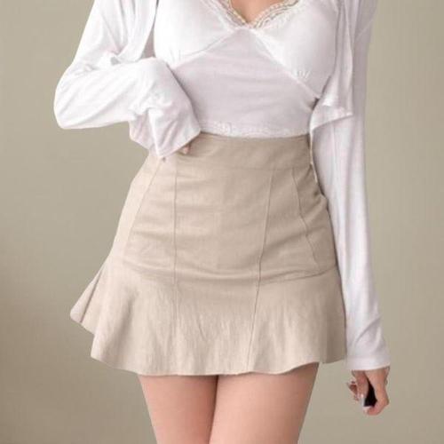 [신상오픈런]여성 키치 무드 가죽 절개 플레어 미니스커트
