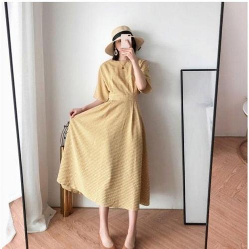 [셀러허브_여성트랜드패션]여성 잔잔 체크 체크패턴원피스 패턴 플레어 언발란스 롱원피스 여성원피스