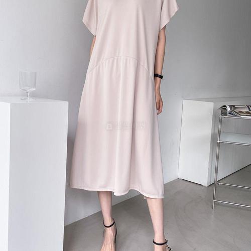 [에이치플러스몰]반팔 플레어 캐주얼 롱원피스