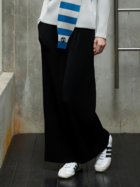 [와이오와이] 베이직 스트레이트 플리츠 팬츠_블랙