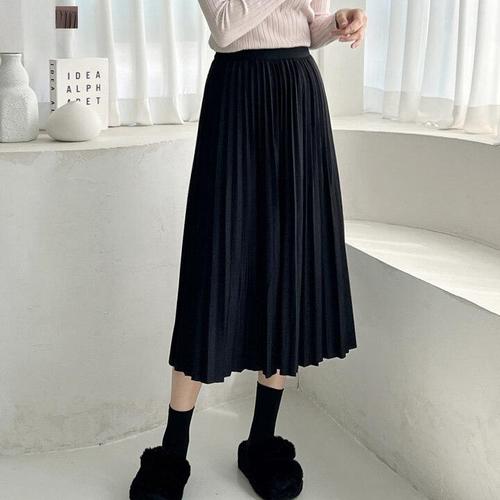 잘빠진 무드 A라인 밴딩 플리츠 롱 스커트