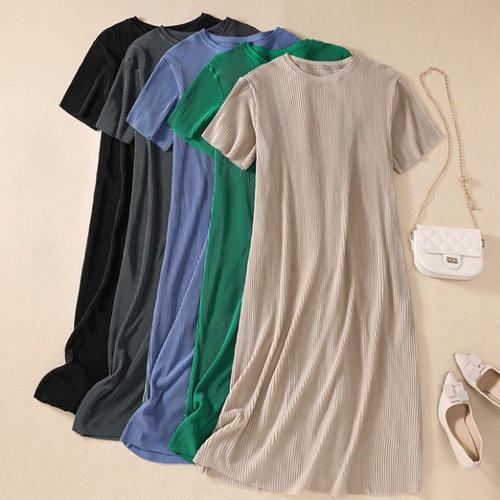 [옷자락] [시즌오프]라운드 골지 플리츠 주름 원피스 여름 반팔_5