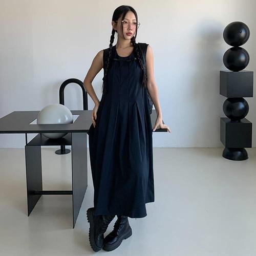 [옷자락] [시즌오프]U넥 플리츠 베이직 꾸안꾸 민소매 롱원피스_5