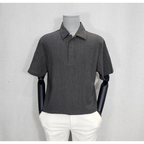 [트루젠] 트루젠 그레이블루 플리츠원단 트임카라 남자 반팔 티셔츠 2322RC001044
