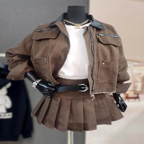 [비바앤코코넛]벨티드 크롭 카라 플리츠 세트