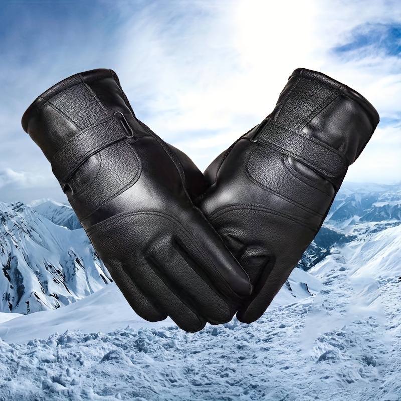 TEMU 블랙 인조 가죽 겨울 장갑, 플러시 안감 - 따뜻하고 터치스크린 호환, 조절 가능한 스냅 잠금, 하이킹, 여행, 낚시, 사이클링, 라이딩에 적합, 라이딩 장비 | 조절 가능한 장갑 | 내구성 좋은 장갑