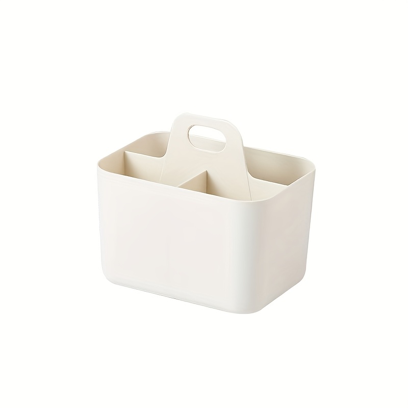 TEMU 1개 휴대용 플라스틱 보관 바구니 손잡이 포함 - 가벼운 데스크탑 정리함, 학교 및 사무실용, 귀여운 화이트/핑크 데스크탑 트레이 (연필, 마커, 문구류용) - 내구성 플라스틱 소재, 백투스쿨 필수품, 완벽한 휴가 선물