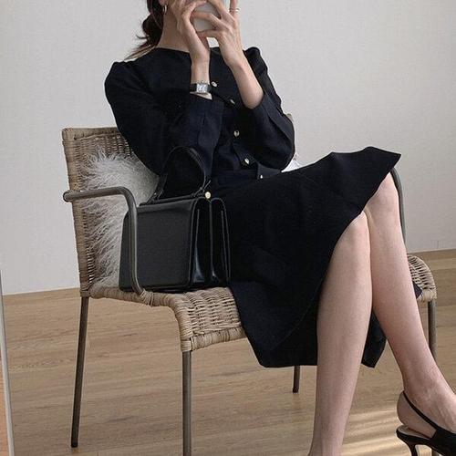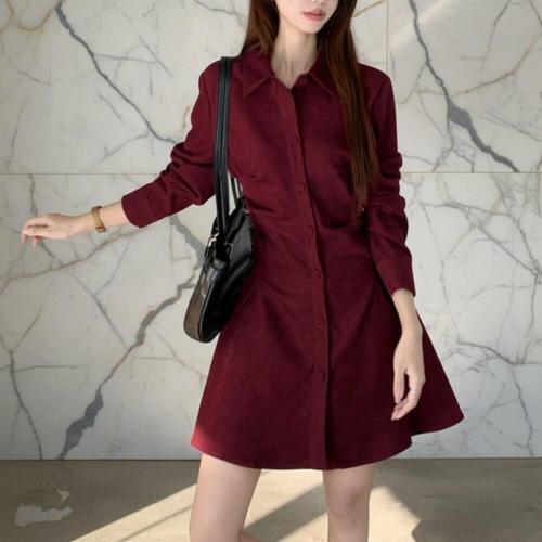 [굿쇼핑몰_의류]2컬러 여성 벨벳 퍼프 핀턱 페미닌 롱 셔츠 원피스