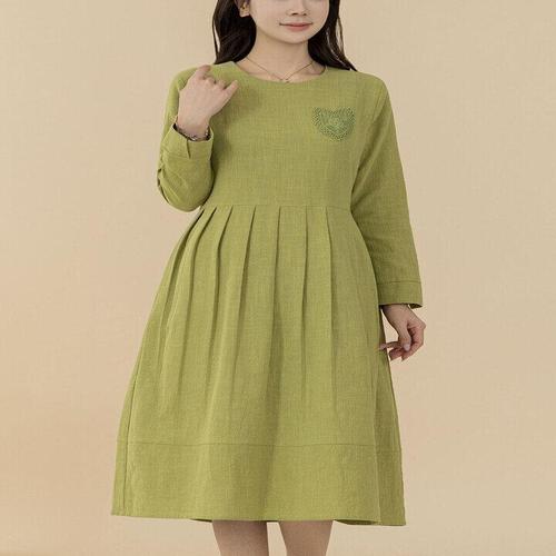 ELLE Paris 여성용 핀턱 롱 원피스