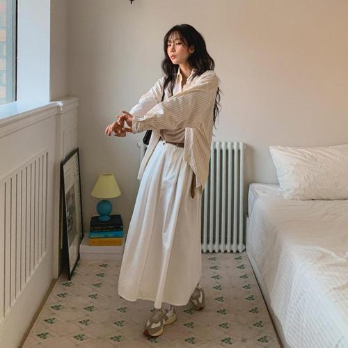 [옷자락]여성 우아한 일상 데이트룩 핀턱 밴딩 롱치마