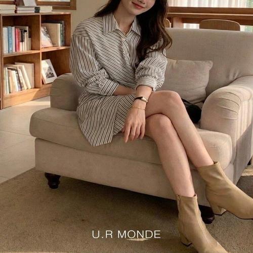 [유아몽드]스트라이프 꼬임 랩 셔츠 원피스 핀턱 드레이프 비대