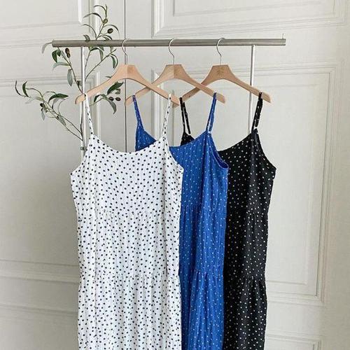 [옷자락]여자 찰랑핏 패턴 핀턱 셔링 민소매 롱 원피스