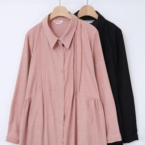 로망스 셔츠 벨티트 롱원피스 3color 카라 기모 a라인 셔링 오피스룩 긴팔 골덴