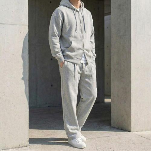 [모노폴로지][세트가]그레이 헤비 투웨이 크롭 기모트레이닝셋트 오버핏 후드집업 핀턱 원턱 와이드 팬츠