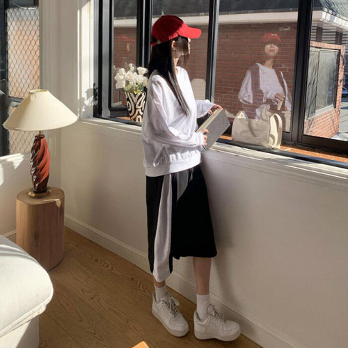 옷자락 / 여자 면혼방 핀턱 배색 루즈핏 밴딩 트레이닝 하프팬