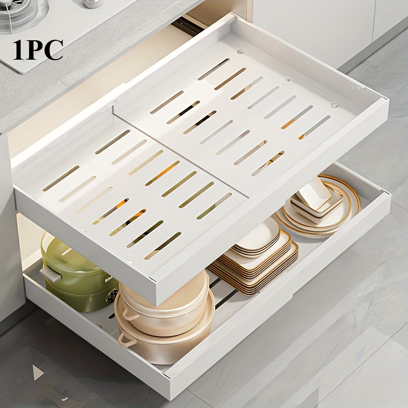 TEMU 1개 ZGO 풀아웃 캐비닛 정리함 - 컴팩트, 확장형 서랍 시스템 - 냄비 & 프라이팬을 쉽게 정리, 스타일리시한 블랙 엔드로 엉망을 정리 - 주방 캐비닛 & 팬트리 정리에 적합
