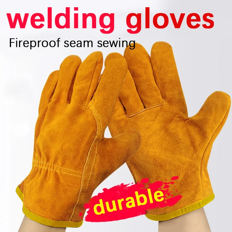 전기 용접 장갑 소가죽 내열성 짧은 스타일 용접공용 방열, 내구성 부드러움, 보호 장비 용접
