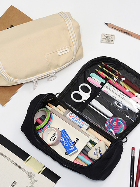 더블 레이어 대용량 2단 지퍼 필통 베이지 대학생필통 고등학생필통