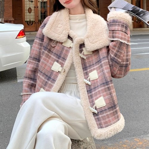 [몽벨리즈]털안감버클핑크체크자켓 mde2302596