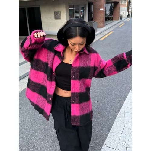 [샵앤]여성 카라넥 도톰 체크 포근 털자켓 겸 셔츠 MCR-WBL-5101-핫핑크