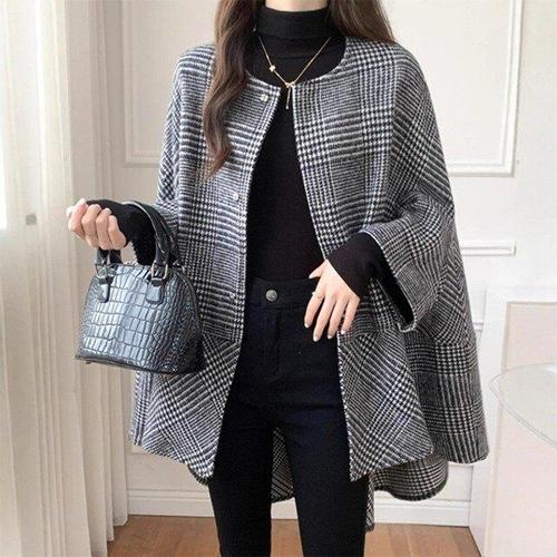 봄 가을 여자 트위드 자켓 프렌치 루즈핏 터틀넥 하운드 체크 정장 코트 캐주얼 여성 긴팔 재킷 아우터 YSQ