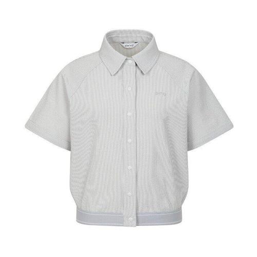 [핑]여성 서커 풀오픈 카라 반팔 티셔츠 121F2TR384_GY_IC