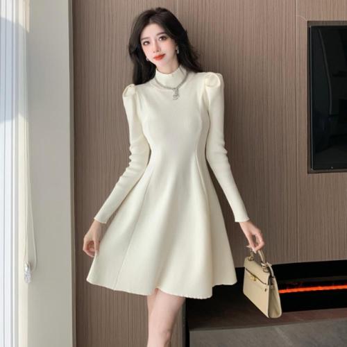 [옷자락] [시즌오프]겨울 페미닌 하객 정장 플레어 폴라 미니원피스_5