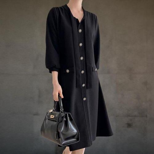 [옷자락]여성 가을 하객 패션 리본 상견례 A라인 버튼 롱 드레스