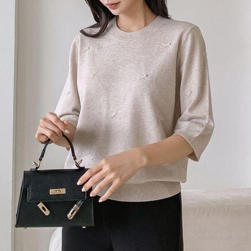 [다잇템_패션]여자 오피스룩 가을하객룩 리본 진주 니트