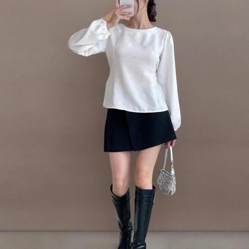 [옷자락] 여성 가을 하객 패션 리본 장식 핀턱 퍼프 여리핏 블라우스