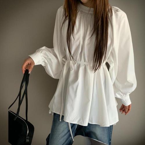 [옷자락] 여성 가을 하객 패션 퍼프 소매 셔링 루즈핏 리본 블라우스