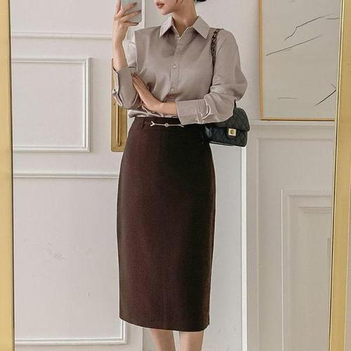 [다잇템_패션]여자 가을하객룩 사슬 출근 일자 중간 스커트